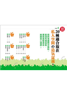 什麼空間該放什麼植物?本書根據植物「淨化空氣」的功能,並依最常停留的「居家」及「辦公」兩大室內環境容易出現的空氣汙染物質給予相對應的建議,例如:廁所最常出現「阿摩尼亞」,可擺放麥門冬、仙客來;辦公室常有影印機、掃描機會釋放「二甲苯」、「三氯乙烯」,所以要選放常春藤、非洲菊……,讓你一看就懂,照著擺就能輕鬆享受新鮮空氣!