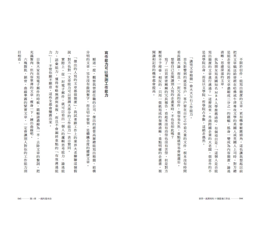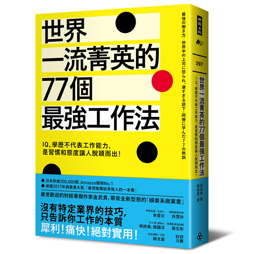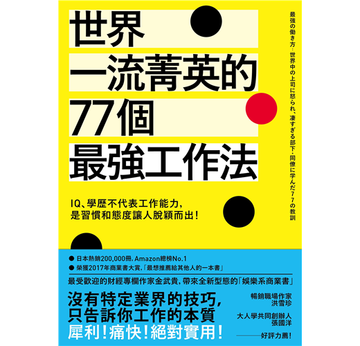 而這本《世界一流菁英的77個最強工作法》,作者用自己的或身邊的例子說明,讓我常常在心中自省:糟糕,這壞例子就在說我⋯…但是還好作者也同時提出了改善方法和效法對象,能夠讓我重新思考工作與自我實現的結合。