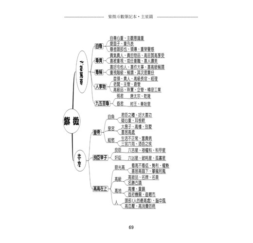 另外,「主星篇」與「副星篇」的心智圖和古文(十二宮的概略說明)編排,或許有些人認為有切割畫面的不良感覺。然而,筆者如此編排乃是考量閱讀時的字體大小和全圖完整性。
