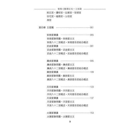 期望這樣的編排方式,能對「紫微斗數」的學習環境有所助益,在此也感謝諸多前輩的著作,讓我學習上能有所獲。