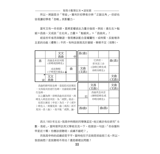 另外,「主星篇」與「副星篇」的心智圖和古文(十二宮的概略說明)編排,或許有些人認為有切割畫面的不良感覺。然而,筆者如此編排乃是考量閱讀時的字體大小和全圖完整性。