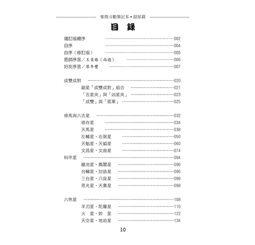 此次的「增訂版」,更是將「紫微斗數筆記本」系列的「主星篇」、「副星篇」、「格局篇」、「論命觀念篇」再做一次編排與整合,讓讀者在閱讀或學習上,透過增加的圖檔來理解或找尋相關資訊。