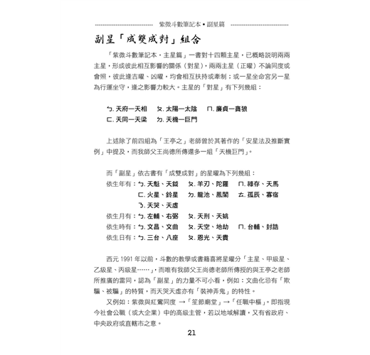 而「副星」依古書有「成雙成對」的星曜為下列幾組: