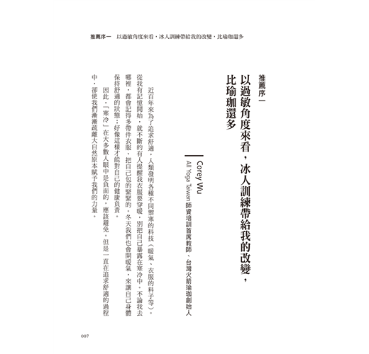 希望各位讀者能享受閱讀這本書的過程,也祝你洗冷水澡順利。
