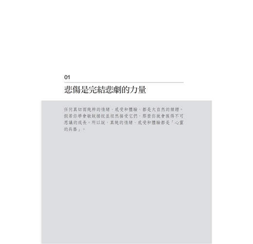但太多時候,我們有一種妄想:有些感受不舒服,我不去面對,它就不存在了。這自然是不可能的。有了悲傷的人,是不可能藉由哈哈大笑,把悲傷給徹底消滅的,他只能去擁抱他的悲傷。