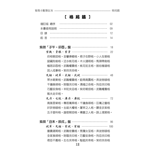 此次的「增訂版」,更是將「紫微斗數筆記本」系列的「主星篇」、「副星篇」、「格局篇」、「論命觀念篇」再做一次編排與整合,讓讀者在閱讀或學習上,透過增加的圖檔來理解或找尋相關資訊。