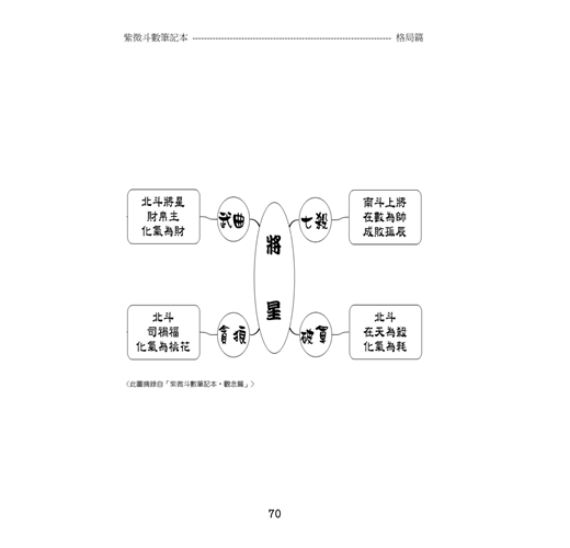 另外,「主星篇」與「副星篇」的心智圖和古文(十二宮的概略說明)編排,或許有些人認為有切割畫面的不良感覺。然而,筆者如此編排乃是考量閱讀時的字體大小和全圖完整性。