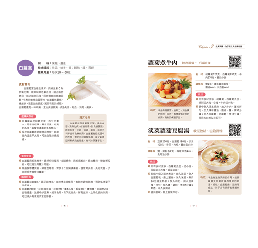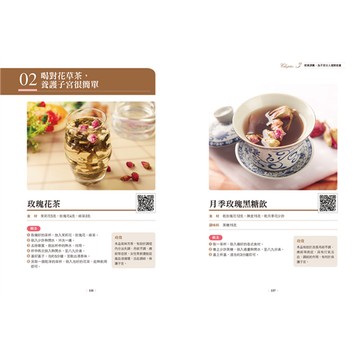 教你徹底改善體質,幫助子宮恢復正常運作。每道食譜都附有QRCODE,隨掃隨看,做法簡單易上手。更貼心收錄16種花草茶,只要熱水一沖,直接就能喝,省時又省力。