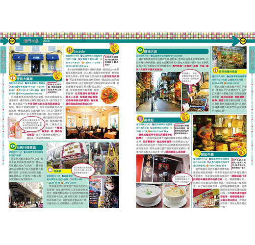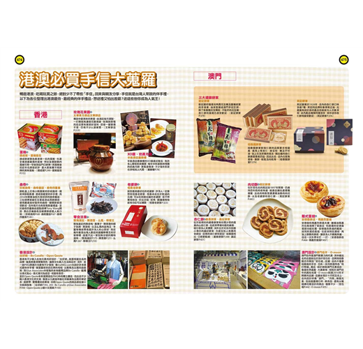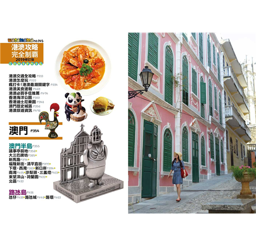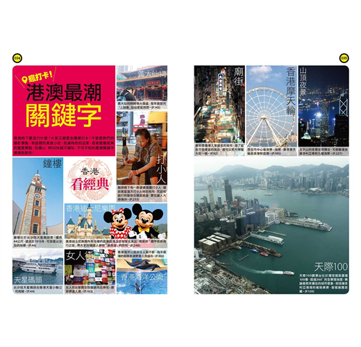 特別整理了香港及澳門最夯的關鍵字,帶讀者速覽最新和最經典的旅遊景點,包括超人氣「影靚相」景點:香港的彩虹屋邨、怪獸大廈、卡通主題港式點心等。還有「港澳必吃」、「港澳精選伴手禮」等企劃,帶讀者熟門熟路玩港澳!