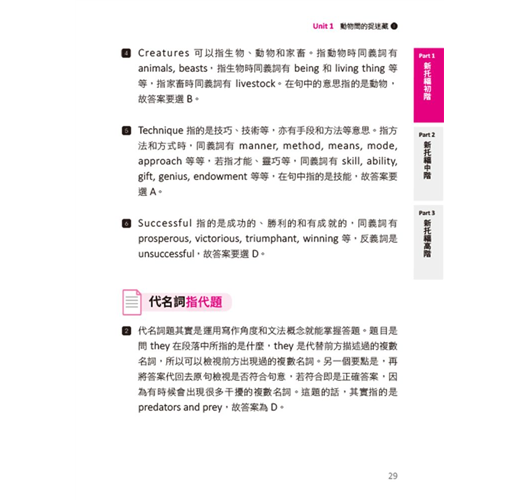 PART 2 新托福中階:詞彙、代名詞指代、細節和否定資訊題和推論題
