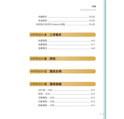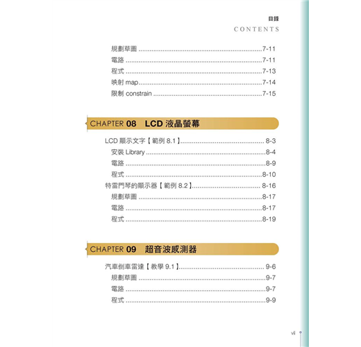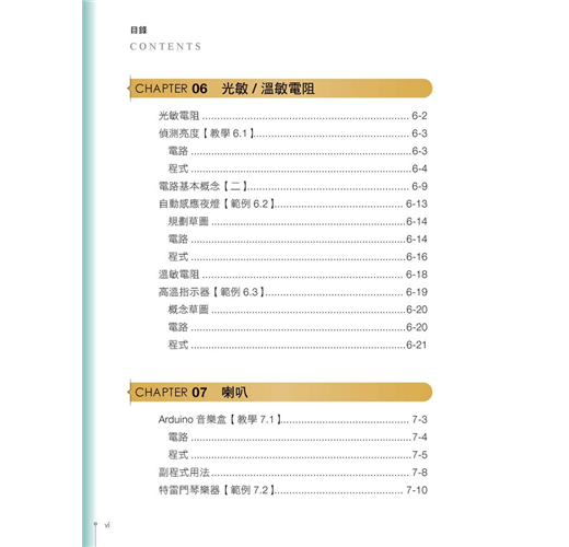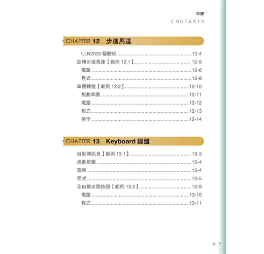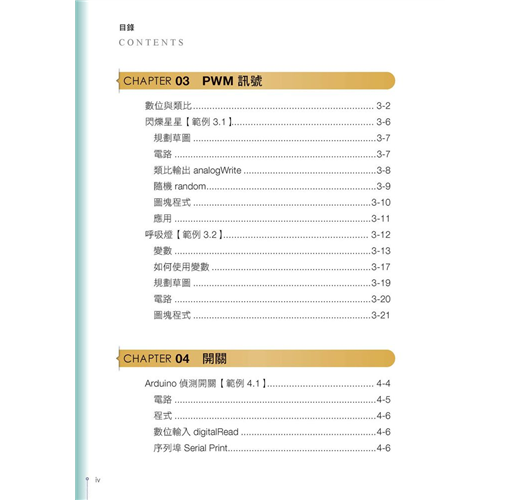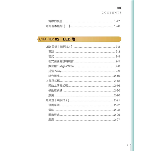 本書並應用各種感測器、按鈕、LED燈、PWM訊號、開關、可變電阻、光敏/溫敏電阻、喇叭、LCD液晶螢幕、超音波感測器、伺服馬達Servo、直流馬達、步進馬達…等,讓您從元件組合建構起自己的Arduino裝置設計。