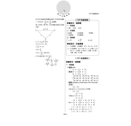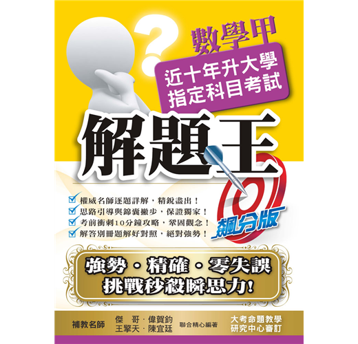 延攬超強補教名師,以其多年豐富的教學經驗,逐題編寫詳盡的解析,對於難度甚高的整合題型更有精闢的剖析。歷屆試題破題的關鍵在於能否連結到相關主題內容,因此詳列題目出處,讓同學養成具備所有應考觀念的能力,實力才得以發揮甚而游刃有餘;此外,每題輔以思路概述,讓同學們能將定理及性質重新複習一遍,進而加深學習印象。解題錦囊則針對解題撇步與超強公式,作出全面性的整理。