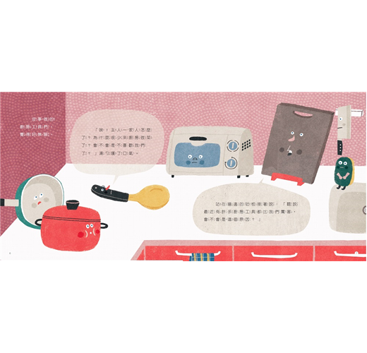 自從鎮上開了一家新餐廳後,小西一家人就很少進廚房做菜。廚房工具擔心主人是不是不喜歡它們了,它們該怎麼做呢?