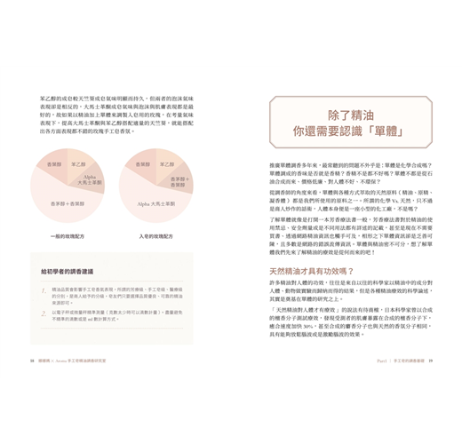 也希望藉由這本書,解答皂友在手工皂調香上的困惑外,也能澄清大眾對天然甚至合成原料根深蒂固的誤解。