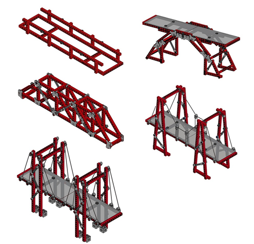 選定這個主題就是要讓小朋友可以針對橋梁的功能及地形對應、橋梁的力學特性、橋梁的結構型式等數種方式,透過積木來和橋梁做最親密的接觸,認識橋梁的力與美。希望在小朋友這個年紀就能對這些隨處可見的橋梁有初步的認識;透過積木的操作,學習到最基...
