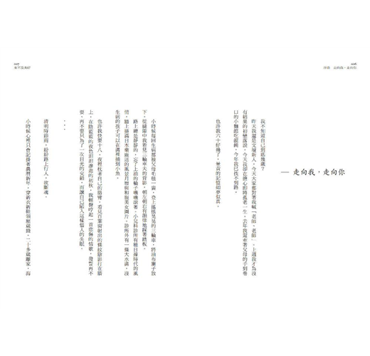 「人生私散文」系列是深刻而動人的作品,首部曲《何不認真來悲傷》以「悲傷」貫穿;二部曲《我將前往的遠方》圍繞著「孤獨」;第三部曲《來不及美好》則關於「告別」,與過去的時代、青春告別――