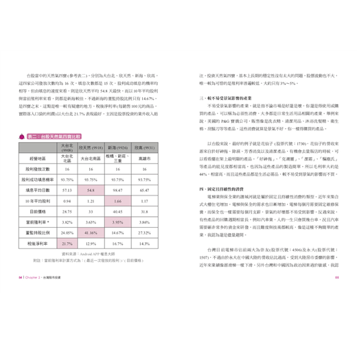基於理性及穩定獲利的觀點,作者將資金分布在以下3種投資工具中:「睡美人概念股+台灣50+美股ETF」。在本書中,他說明了相關的觀念、知識及方法,讓你也能長期賺資本利得、短期賺股息。