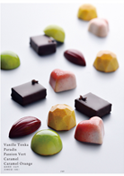 而蘊含在「夾心巧克力」之中的「多元層次感」,也藉由材料搭配、整體結構、餡料調和等不同領域的技術完美地呈現。不論是鑑賞外觀的構成、拾起一塊,感受輕盈卻能在後續迸發百變滋味的期待感、一直到最後送入口中後迴盪不去的豐富餘韻,打從揭開盒蓋的那一刻起,等待我們的就是一連串的多元感官享受。