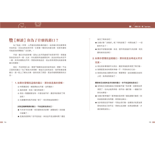 藉口是拖延者敷衍別人、原諒自己的擋箭牌,是掩飾弱點、推卸責任的萬能法寶。
