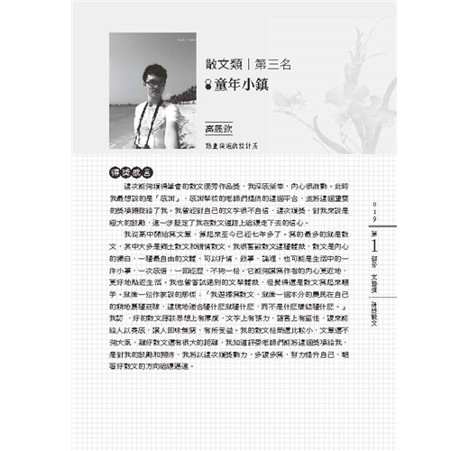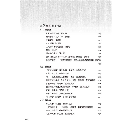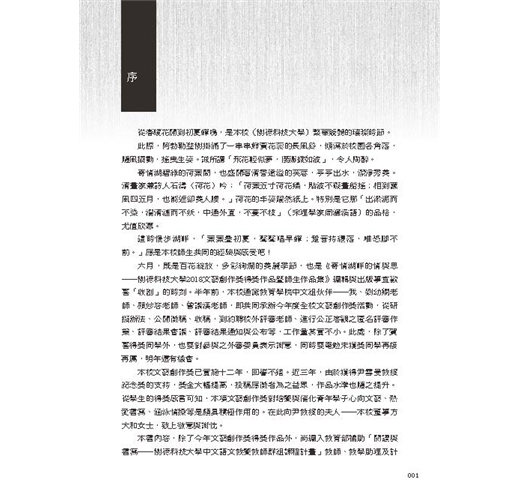 本書除了2018文藝創作獎得獎作品之外,尚編入同年度師生優良文作。這些佳構,概為每位作者最新力作,或是其讀書心得,或是其生活感受,無論就生活應用或生命啟示盱衡,皆有其意義與價值。