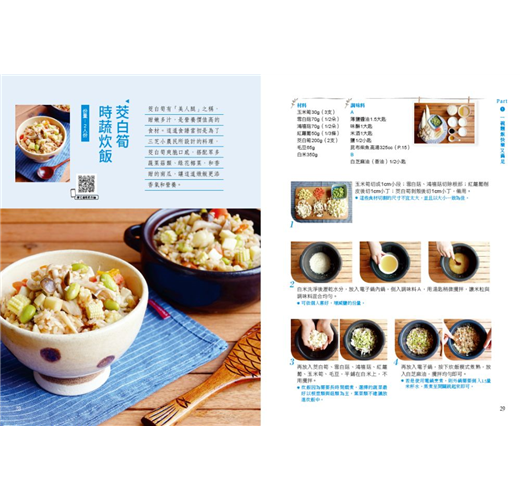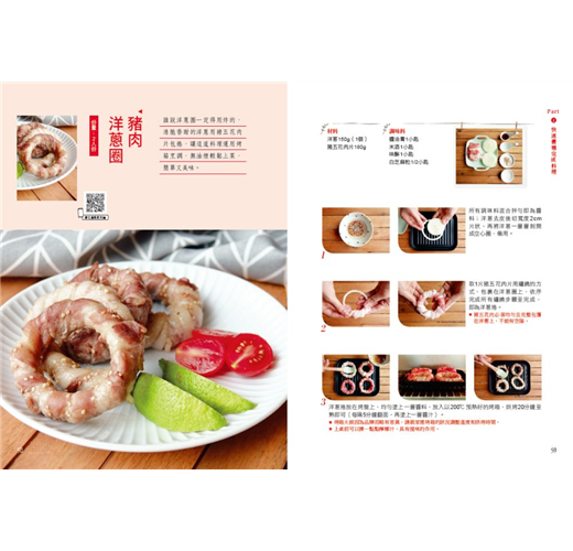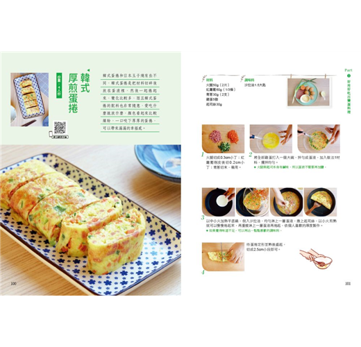 書中更收集作者Facebook粉絲團分享次數高的人氣料理(例如:溏心蛋、香菇瓜仔肉燥、麻油雞蛋麵線煎、薑燒豬肉丼飯、豬肉洋蔥圈、黃金泡菜、巧克力菇菇包、餃子的10種包法、青葡萄生起司蛋糕、芋圓地瓜圓、水果雪球氣泡飲等),並且附上影片教學連結QRcode,讓大家可以透過影片學習,看清楚所有烹調細節!