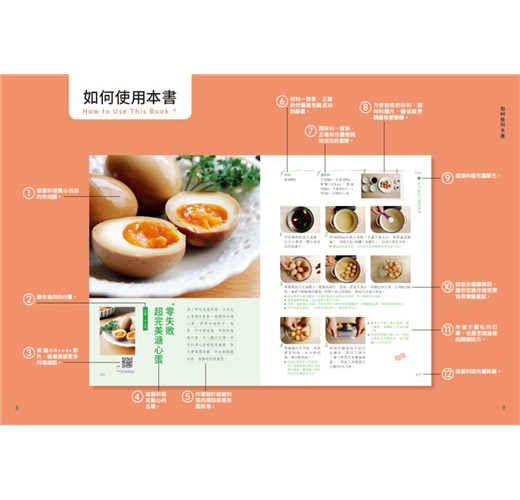 我習慣買食譜回家練習,但發現許多食譜書都沒有附步驟圖片,僅以文字簡單描述。於是為了讓讀者更容易理解每一個步驟,在書寫與拍攝烹調過程時,我會用初學者的角度來完成,希望大家都能看得懂。本書每一道食譜皆搭配許多烹調步驟圖,每一個做法至少有一張圖片,看著圖片一步接著一步完成,相信你會越來越有成就感!書中也收集個人Facebook粉絲團分享次數高的人氣料理(例如:溏心蛋、香菇瓜仔肉燥、麻油雞蛋麵線煎、薑燒豬肉丼飯、豬肉洋蔥圈、黃金泡菜、巧克力菇菇包、餃子的10種包法、青葡萄生起司蛋糕、芋圓地瓜圓、水果雪球氣泡飲等),並且附上影片教學連結QRcode,讓大家可以透過影片學習,看清楚烹調細節!