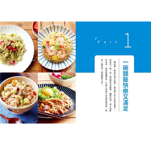 忙碌到沒時間下廚,新手學料理,或是想到下廚就害怕烹調過程繁瑣,以及飯後收拾的麻煩,這本書一定適合你,以「省時、快速、方便」設計102道食譜,分類成七個單元,包含:一碗麵飯快樂又滿足、快速優雅完成料理、好用好吃百變蛋料理、一鍵到底蒸物甜湯、方便好食常備料理、不用烤箱就能做點心、放鬆一下茶點好時光。每道食譜皆搭配步驟圖,Step by Step完成,相信你會越來越有成就感,也讓自己、家人天天吃得健康又美味!