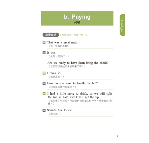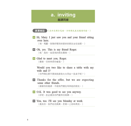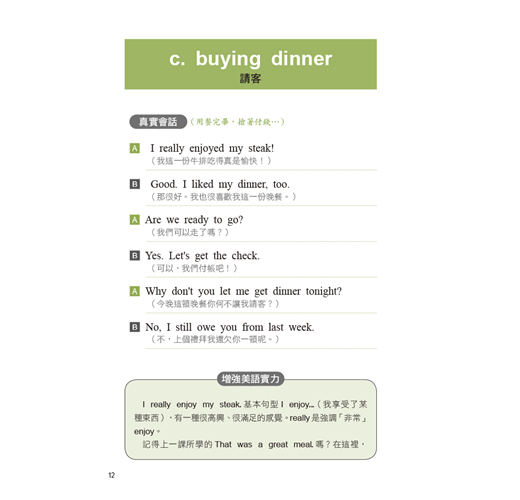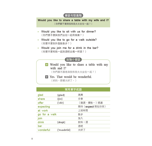 3.您會發現,在各種生活場合用得上的情況,都為您列有最常用的句子,供您最恰當地選用。在任何場合都可以聽得到、用得上的會話,都特別標明、集中注意力,讓您更容易學、讓您更容易聽、讓您更容易說。