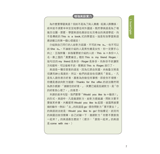 3.本書都是學英語的重點,每學一句話,立刻就在任何場合加以應用,你會學得很快,很有成就。暢說英語,學會English,就在一瞬間。