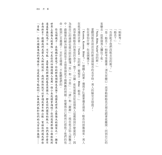 「我忘不了!我從來不知道我父親是誰,沒人跟我說,他們卻在我背後嘀咕。我知道的就是我媽媽告訴我的那些:她說我爸爸在從非洲回來的海上船沉了。現在請你告訴我,他們對我父親究竟做了什麼?」