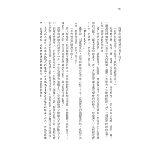 「那件事發生在一九○五年,那是他們唯一告訴你真實的部分,其他你聽到的全是假的。我記得很清楚,那時姨丈在執行一項任務,在非洲西南部,因為我很喜歡那個地名,所以一遍一遍地在地圖上找那個地方。當時我十歲,有一天晚上,我聽見書房傳來很大的喊叫聲,我就下去看看怎麼回事。我很吃驚地發現你爸爸在我們家。他正和我父親討論什麼事,兩人坐在圓桌子前。屋子裡還有兩個人。我可以看到其中一個,那人很矮,身體纖細像個女孩,他什麼也沒說。我從門口看不清另外那個人,但是我可以聽到他說話的聲音。我正要進去和你父親打招呼,他總是在外出回來後給我帶禮物,但就在我進門之前,我的媽媽揪住我的耳朵把我拉回屋裡。『他們看到你了嗎?』她問,我說沒有,說了好幾次。『你可不許把你今天看到的說漏一個字,永遠不許,你聽見沒有?』然後我……我就發誓說我不會說……」