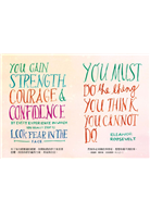 ——有了每次經歷過的經歷,你開始真的停下來看著恐懼,因為你終於贏得力量、勇氣和自信。然後你必須做的事情是,想想你做不到的事。by愛蓮娜•羅斯福 (前美國第一夫人之一)