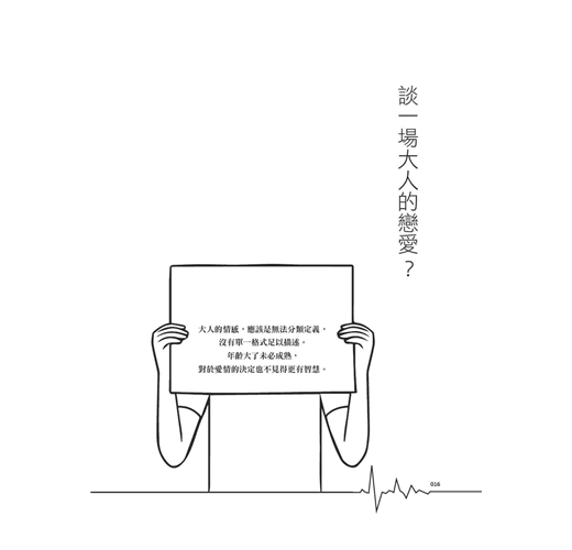 廣告也很愛用類似這樣的文案:「談一場大人的戀愛吧!」聽起來好像不錯,但是,大人的戀愛,是什麼樣的戀愛?通常,會聯想到不倫的婚外情?或是第二春?一旦如此聯想,好像覺得不那麼浪漫,不容易被理解。世間普遍有種看待熟年愛情的偏見,太過奔放難免被評斷不為家人的面子著想,如果太過率性,又容易被輿論唾棄,成為被批判的主角。