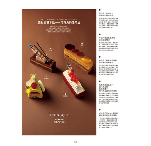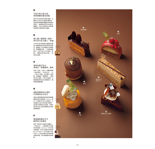 無論是基本款、人氣甜點、新品、季節商品等,各種品項在店裡的重要性雖各有不同,卻都能強烈反映出甜點師傅的各自風格。從詳細的食譜配方中,不僅可以看到製作方法的重點,還能透過文字,了解甜點師跟店家對於甜點製作的堅持。
