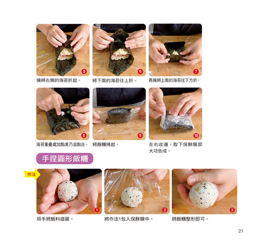 飯糰要好吃,捏功不能馬虎,掌握得宜,才能做出米粒Q彈的美味飯糰。不管是用手捏製或利用模型塑形,一起來學學不同形狀的飯糰包法吧!
