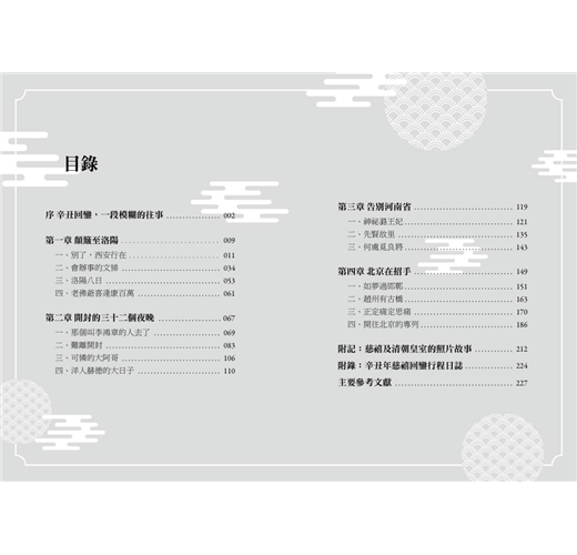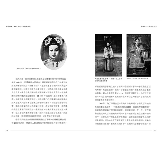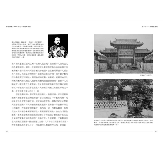本書即以這套照片為核心,結合官方史書、當時的媒體報導、當事人回憶錄以及各類方志等對當年慈禧行程的記載,深入發掘照片背後的歷史,從而為讀者勾勒出這樣一條線索:當年慈禧都去過哪兒?在每個地方發生了什麼事?留下了什麼趣聞?當地百姓及官員的命運如何?當年那些行宮署衙、名勝古蹟如今何在?作者試圖通過這一系列梳理,使人們認識一個不一樣的慈禧,並且從一個獨特的視角觀察當時岌岌可危的大清王朝。