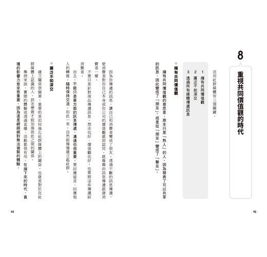 無論你是企業內部社群媒體的小編、網拍業者的小老闆、苦思無法殺出重圍的業務員,或是想要打造個人事業,本書提倡的價值行銷新觀念,絕對能讓你有所啟發。