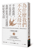 所有的人都問自己:我欠父母什麼?我應該更常探望父母,還是至少定期打電話給他們?我沒跟父親說,他發表在地方報紙上說教式的讀者投書讓人很難堪。這樣為他著想是錯的嗎?還是應有的禮貌限度?早已成年的孩子必須尊重母親不想要照護的願望,眼睜睜看著她在老年越來越邋遢?孩子要傾聽父母的政治觀點,即使那些觀點很糟?孩子可以跟父母說,邀他們一起度假很好,但是他們寧願自己去度假?孩子可以在父母過世幾年後,把遺留下來的老衣櫥放到拍賣網站上嗎?身為子女,我們到底欠父母什麼?單單因為我們是某人的孩子,就已經是對這些人擔負責任和義務的理由嗎?