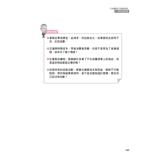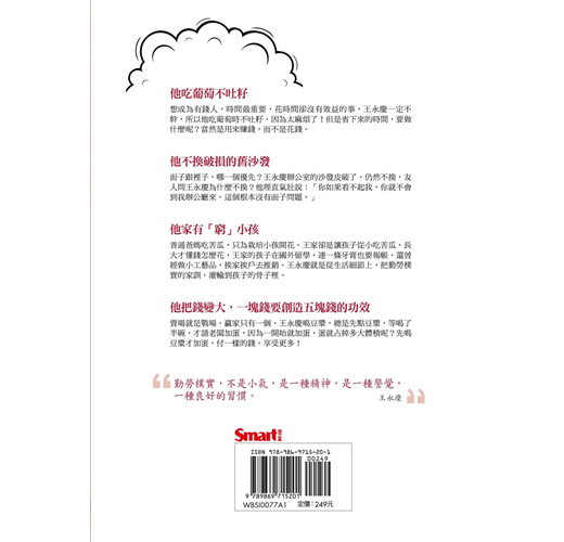 「賺一塊錢還不是你的,省一塊才是。」王永慶來不及教你的十四堂致富心法,現在一次統統給你,學會王永慶的省錢、用錢、滾錢好習慣,你,就是下一個有錢人!