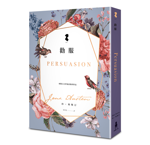 自從《傲慢與偏見》出版之後,珍.奧斯汀幾乎成為十九世紀以降的戀愛小說之母,其中經典公式更是不停被複製:女孩與男孩相遇、初見面就惹彼此心煩、各式各樣的誤會、各式各樣的時機不湊巧、男主角解救女主角的英勇作為、互相愛慕,從此過著幸福快樂的生活。其中多金又傲嬌的達西先生更堪稱霸道總裁始祖。即便到了奧斯汀的最後一部小說《勸服》,這組公式仍然存在,不過若深究其中細節,仍能發現許多與早期作品不一樣的驚喜。