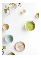 有一天,我來到京都,在金繕大師津吉(Tsuyoshi)的家庭工作室觀察他作業。他讓我想起印象派畫家祖父的智慧、藝術家性格和他洋溢的才華。津吉謹慎的密合好破損的陶器,然後用黃金填補裂縫。我看著這位大師在破碎的器皿中,注入自己的能量與靈魂,令它起死回生。這幅景象重擊著我:金繕是所有人都需要的自我照顧。