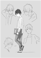 《透過機器人與你相戀》的三位主人公小咲、阿健、小陽的原創角色設定圖,躍上扉頁為你伴讀。