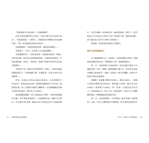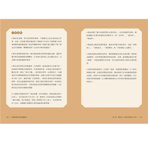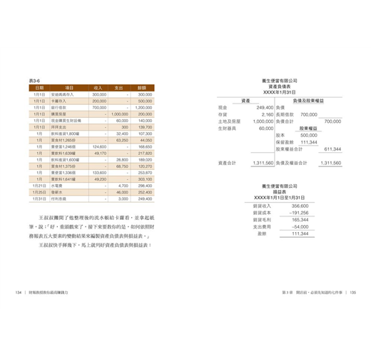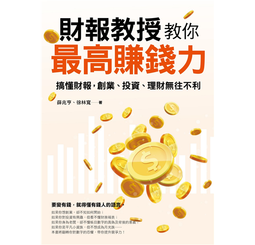 正確的金錢觀念以及實用的財務知識,已經是現代人不可或缺的普通常識。透過兩位作者30年的會計師實務操作經驗以及多年大學會計學教授教學方法,你將跟著名師建立務實的財報觀念,進而打造堅固的生意基礎!