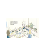 這天,瑪蒂達來到學校,老師邀請了一位作家(寫書的人)和插畫家(畫畫的人)來學校。真是太驚喜了!那位作家寫的書就是爸爸媽媽讀給她聽的書!瑪蒂達可以問他關於書的一切問題,也能問關於作家的問題,插畫家則介紹自己是怎麼畫這些插圖的。