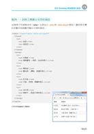 ■ 使用CSS3的Box Model、定位方式,以及字型、文字、清單、色彩、背景、漸層、表格、陰影、邊界、留白、框線、多欄位排版、2D/3D變形處理、媒體查詢等屬性,以根據PC或行動裝置的特徵設計網頁。