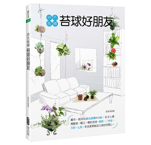 此書超過100顆的苔球,皆出自她的巧手,有單顆球,有組合球,也有加了意境的苔景,毫不藏私與大家分享。