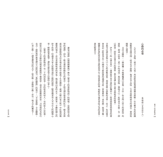 人生少了食物,就少了元氣,然而飲食能夠構成難忘經驗,往往繫乎你的飢餓指數與金錢空間,前者在乎溫飽,後者在乎品味,乍看是唯物層次的滿足,實則攸關唯心感受。