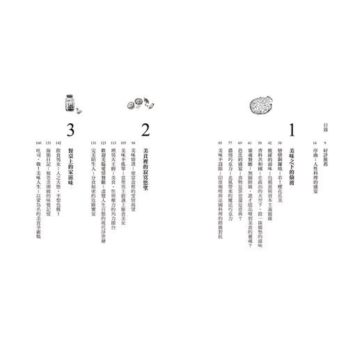 本書選了24部經典電影,以「美味之下的偷渡」、「美食裡的寂寞慾望」、「餐桌上的家滋味」、「料理場上的人生競技」四大主題跟讀者分享。一起品嚐電影作者的色、香、味的藝術表現,剖開故事中的社會意識與價值觀,一窺作者的觀點,當然你也可以灑上自己的調味料,那是只屬於我們的人生滋味。