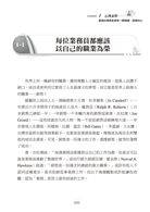 在每一章的一開始就是「銷售諮詢室」單元。這是筆者選出多年來自己與學員互動的信件往來,而他們的問題往往也是我們最常會遇到的問題,透過學生來信和王博士的回覆及解析,點出業務員必學的十堂培訓課,如:業務員的形象、如何練就「生意嘴」、如何談判……等,實用性與可讀性極佳,更能激發業務人的共鳴。