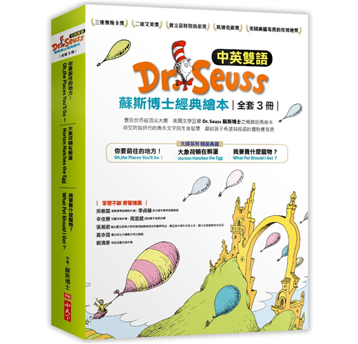 本套書集結世界級頂尖繪本作家Dr. Seuss蘇斯博士3本膾炙人口的暢銷經典繪本作品:《你要前往的地方!Oh,the Places You’ll Go!》、《大象荷頓在孵蛋Horton Hatches the Egg》、《我要養什麼寵物?What Pet Should I Get?》適合親子共賞、贈禮收藏。